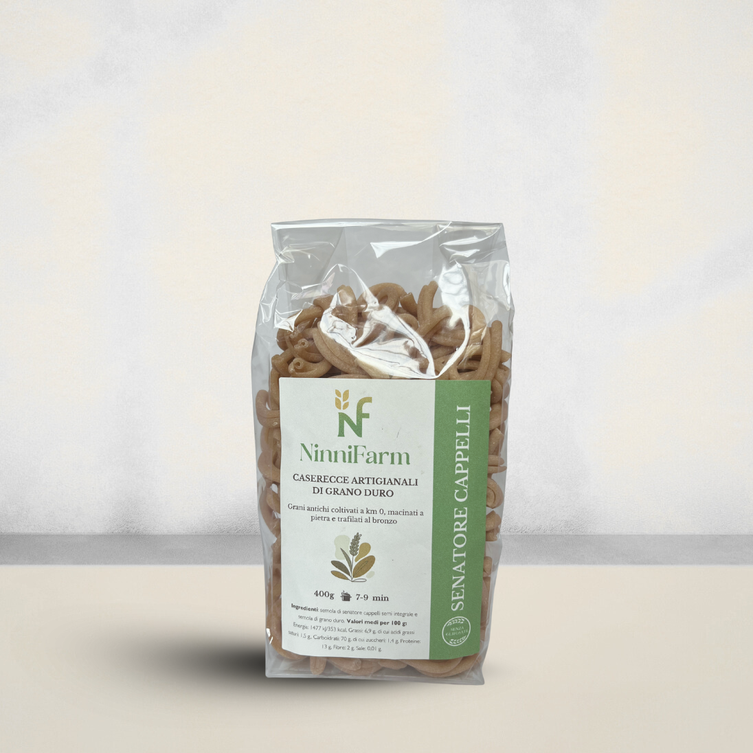 Le nostre caserecce sono realizzate con grano duro senatore cappelli macinato a pietra, un cereale antico e 100% italiano, noto per il sapore intenso e la qualità nutrizionale superiore. La pasta conserva parte del germe di grano e delle fibre, offrendo un perfetto equilibrio tra gusto e leggerezza.