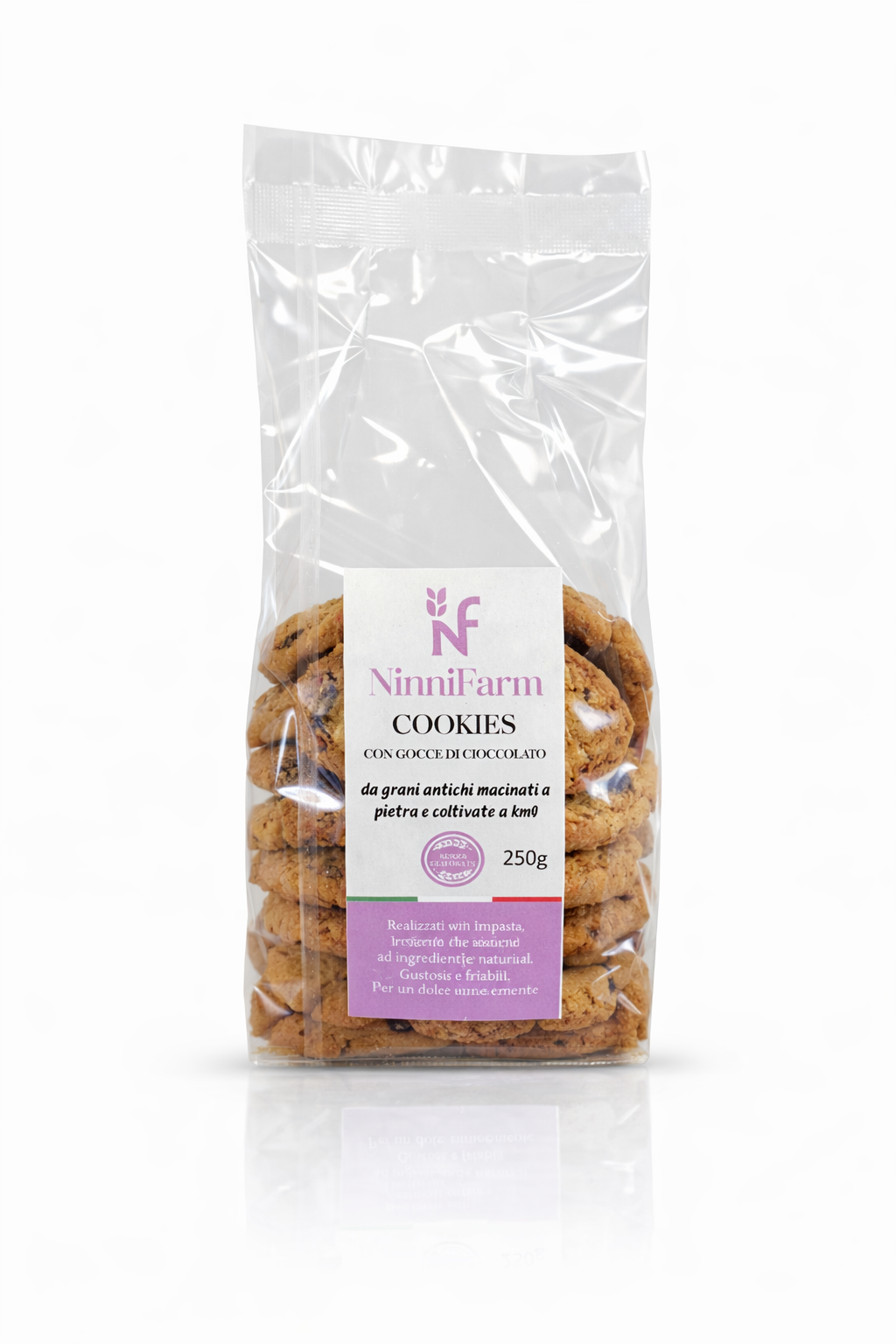 Il risultato è un cookie artigianale dal sapore pieno e caratteristico, croccante fuori e piacevolmente friabile, pensato per chi cerca un biscotto genuino, ricco di gusto e legato al territorio.