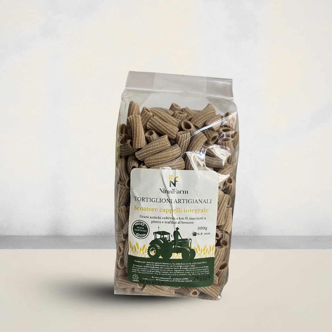 I nostri maccheroni integrali di grano Senatore Cappelli sono realizzati con semola integrale macinata a pietra, ottenuta da una varietà antica di grano duro italiano, apprezzata per il suo sapore intenso e le sue pregiate qualità nutrizionali. Naturalmente ricco di fibre, proteine e minerali come ferro, magnesio e zinco, il grano Senatore Cappelli contribuisce al benessere dell’organismo e favorisce un’energia costante e duratura durante la giornata.